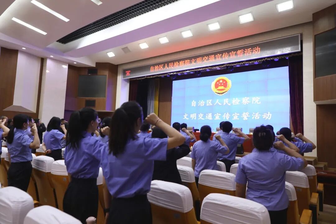 为进一步加强精神文明建设,扎实开展“文明交通、区直先行”主题实践活动,近日,自治区检察院组织开展文明交通宣传教育承诺活动,着力提升机关干部职工文明交通意识。