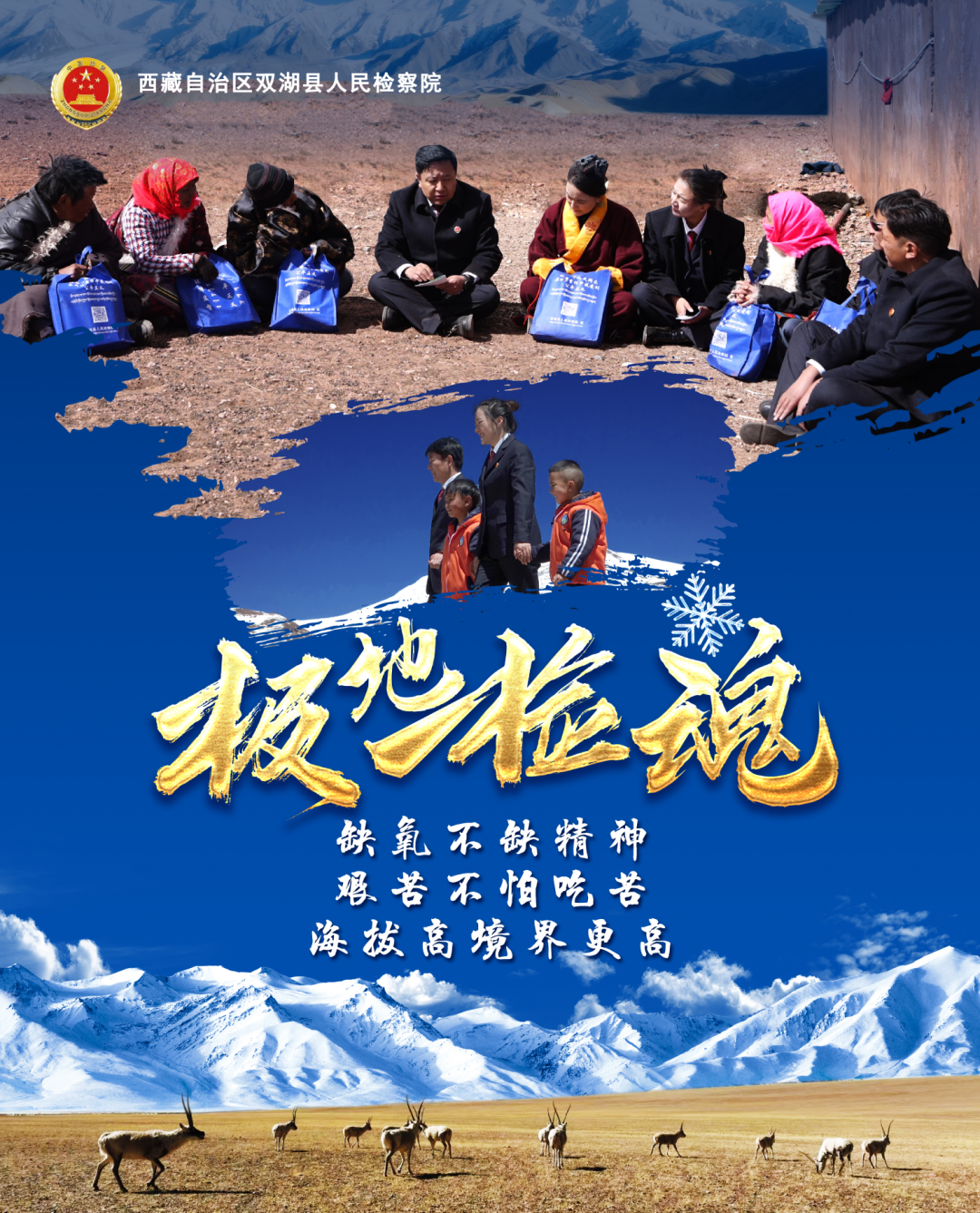 品牌内涵:“极地检魂”品牌源于藏北羌塘无人区环境与检察使命的碰撞,西藏自治区双湖县平均海拔5000米、年平均气温-4℃、氧气含量仅为平原40%,既是地理“极地”,更是检验初心担当的“精神试炼场”。“检魂”是西藏自治区双湖县人民检察院检察官对“那曲精神”的鲜活诠释,以“缺氧不缺精神”守护法治底线,用“艰苦不怕吃苦”践行使命,将“海拔高境界更高”刻进职业信念。品牌特色在于“极地”与“检魂”双向塑造:极地淬炼检魂,在严寒中凝固忠诚、暴风雪中锻造坚韧;检魂守护极地,通过“四大检察”职能延伸,让公平正义温暖羌塘生态与民生,既呼应“老西藏精神”“那曲精神”,又勾勒二者共生逻辑。