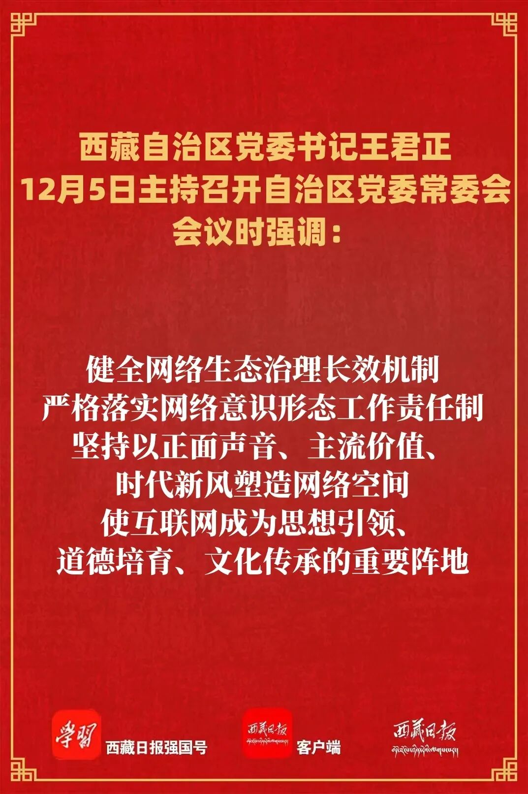 12月5日,自治区党委书记王君正主持召开自治区党委常委会会议,认真传达学习习近平总书记近期重要讲话重要指示精神,研究部署我区贯彻落实工作。