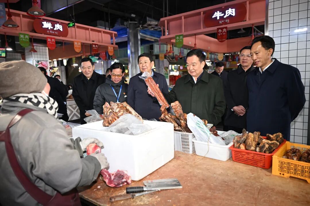 检查中,王君正强调,要压紧压实安全生产责任,严格落实安全生产管理措施,围绕交通、旅游、人员密集场所等重点领域重点部位,抓好隐患排查和安全防范,强化应急预案演练,加强安全宣传教育,做好消防器材、电路、电梯等设施维护保养,切实抓实抓细防风险、保安全、护稳定各项工作。坚持以人民为中心的发展思想,统筹做好重点民生商品保供稳价和质量管理,坚持从供需两端协同发力,扩大优质商品和服务供给,强化市场监测预警,妥善应对价格异常波动,营造诚实守信、公平公正的消费环境,让广大群众放心消费、舒心过节。坚持以新需求引领新供给、以新供给创造新需求,创新推出更多消费新场景、新业态,着力释放消费市场活力、打造消费新增长点,推动稳市场、促消费、惠民生紧密结合;加快完善要素市场化配置体制机制,完善公共服务设施,提升市民购物便利度、体验感,让人气旺起来、消费火起来。