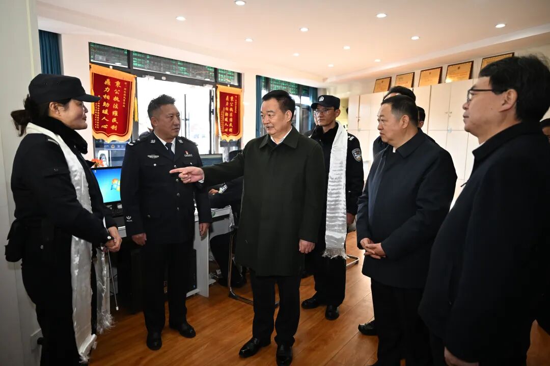 “双节”将至,全区政法干警强化值班备勤,全力守护万家灯火。来到城关区两岛派出所、明珠便民警务站,王君正与公安民辅警一一握手,详细了解基层派出所信息化平台运行情况和值班备勤安排。他说,基层一线的同志们始终坚守岗位、勇担使命,舍小家、顾大家,充分展现了广大政法干警的良好形象。提前祝大家新年幸福安康、生活美满。王君正强调,越是节日期间,越要发扬优良作风,压实工作责任,加强值班值守和工作调度,提高出警速度和质效,强化社会治安巡逻防控,恪尽职守、努力工作,全力保障春节、藏历新年期间社会和谐安宁。要强化科技赋能,优化硬件设施,提升警务工作数字化水平,助推民生服务便捷化、社会治理精准化。