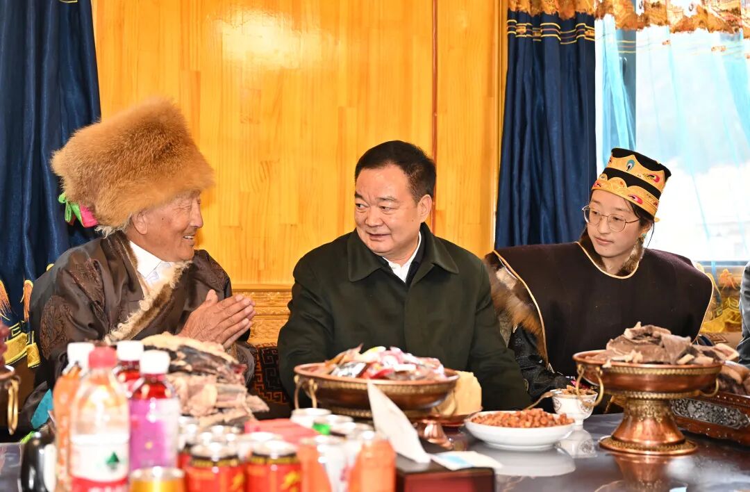 中华民族传统节日春节刚过,雪域高原又迎来了藏历新年初二,家家户户回荡着“罗萨扎西德勒”的温馨祝福。“过年了,祝你们新年快乐、身体健康、吉祥如意!”王君正走进鲁朗镇扎西岗村77岁的老党员、致富带头人平措家里,崭新的香布、整洁的小院,切玛斑斓、卡赛飘香,家里充满浓浓的年味儿。“身体怎么样?”“民宿生意好不好?”在暖意融融的客厅里,王君正和老人聊家常,询问身体状况及家庭收入等情况,随后走进平措家的民宿旅馆,从价格、住宿条件到屋外山景,看得仔细、问得深入。了解到在以习近平同志为核心的党中央亲切关怀下,扎西岗村发生了翻天覆地的变化,平措一家借助本地旅游资源,开民宿、做餐饮,年收入不断增加,日子越过越好,王君正为他们的发展感到由衷高兴、为他们的幸福生活点赞。他说,“看着北斗星走不迷路、跟着共产党走会幸福”,这些好日子,离不开以习近平同志为核心的党中央对西藏工作的高度重视、对西藏各族人民的深切关怀,大家要感恩总书记、感谢党中央,更加坚定不移听党话、感党恩、跟党走;党员要发挥先锋模范作用,发扬党的光荣传统和优良作风,带领村民用勤劳的双手把家园建设得更加美好,把日子过得更加甜蜜。