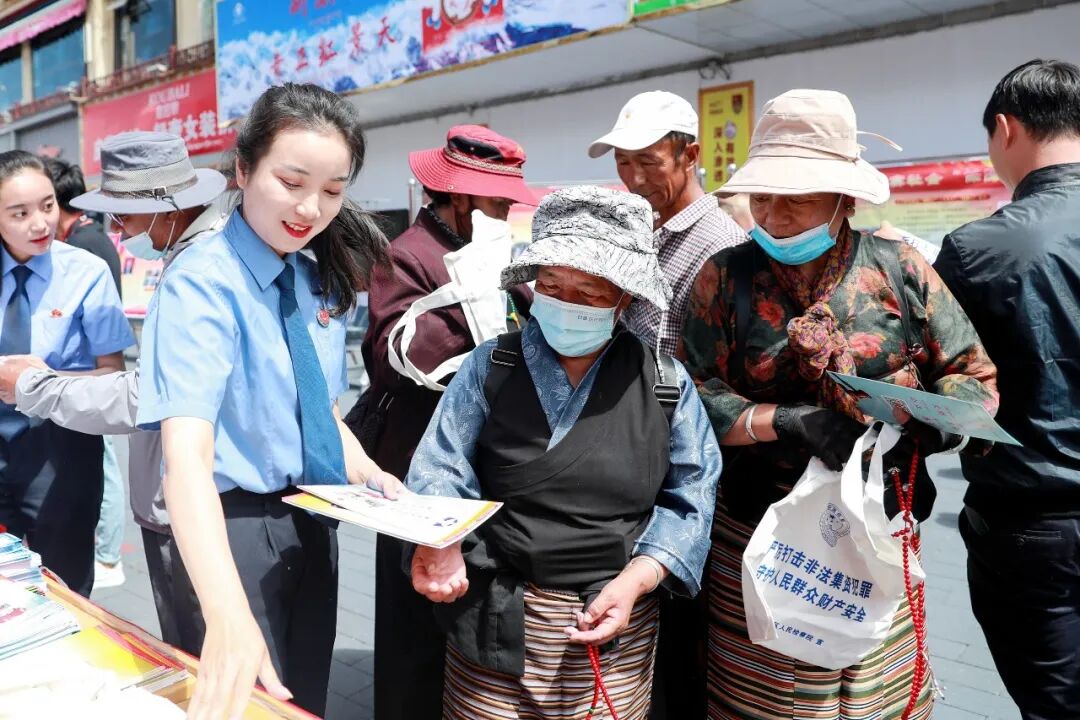 2021年6月,西藏自治区检察院干警在拉萨街头普法宣传。