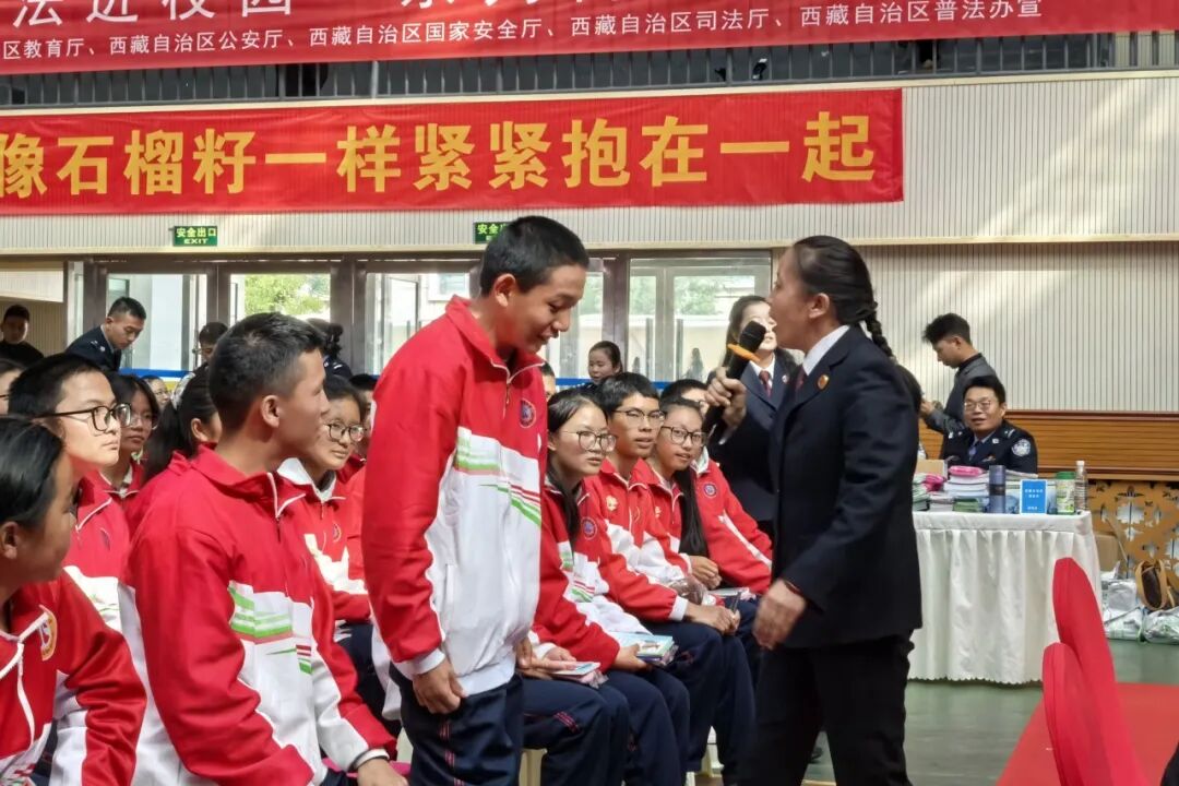 为进一步增强青少年法治观念,营造安全稳定、和谐文明的校园环境,护航青少年健康成长,近日,由自治区高级人民法院、自治区人民检察院、自治区教育厅、自治区公安厅、自治区司法厅、自治区普法办、自治区戒毒管理局联合主办的西藏自治区2025年“送法进校园”系列普法宣传示范活动先后走进拉萨市实验小学、拉萨北京中学、拉萨师范学院、西藏职业技术学院四所学校,开展一系列形式多样、内容丰富的普法活动。